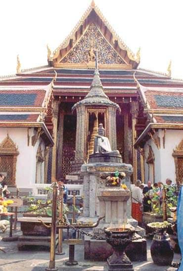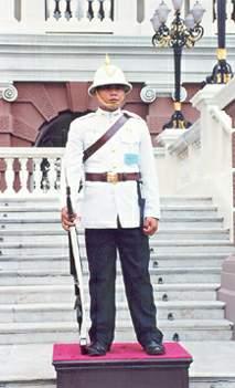 Королевский дворец – состоит из трех маленьких дворцов, наподобие матрешки и составляют одно целое. Что бы попасть во второй двор нужно пройти арку-ворота. На входе вас встречает статуя Будды в сари, цвет которой, зависит от какой на этот момент с сезон, и менять ее имеет право только король. Во внутренний двор вход зарыт, так как там находятся апартаменты самого короля Таиланда, где он останавливается приезжая в Бангкок. Но здания можно увидеть и через ворота.