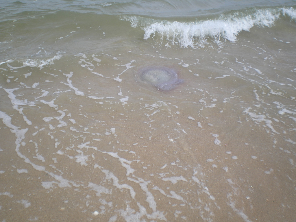 Сегодня мы катались на мотобайках на этот пляж, покупались немного. После гуляли по берегу и увидели в прибрежных водах медузу. Большая, больше 50 сантиметров в диаметре. Фото выкладываю. Впредь будем осторожнее....