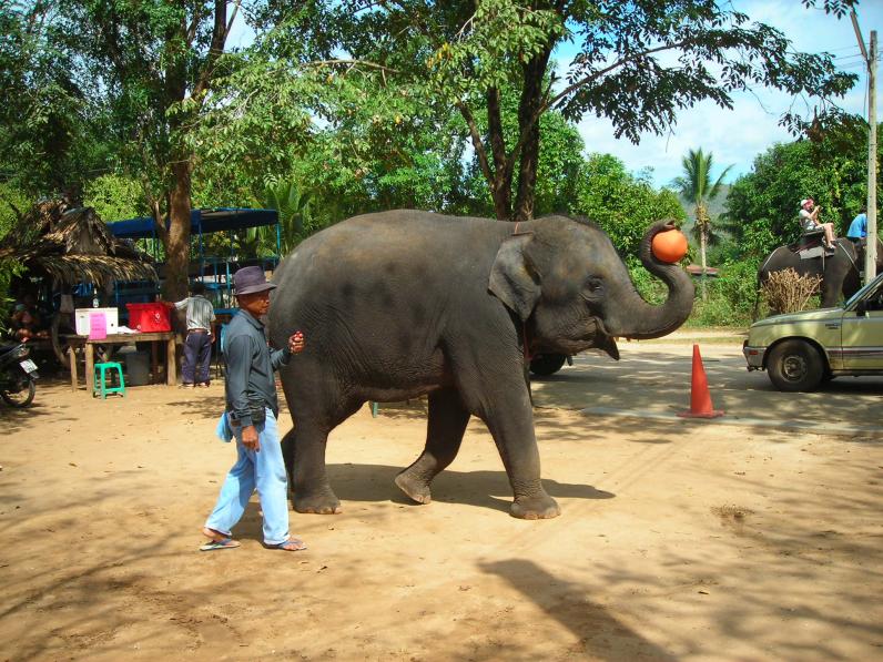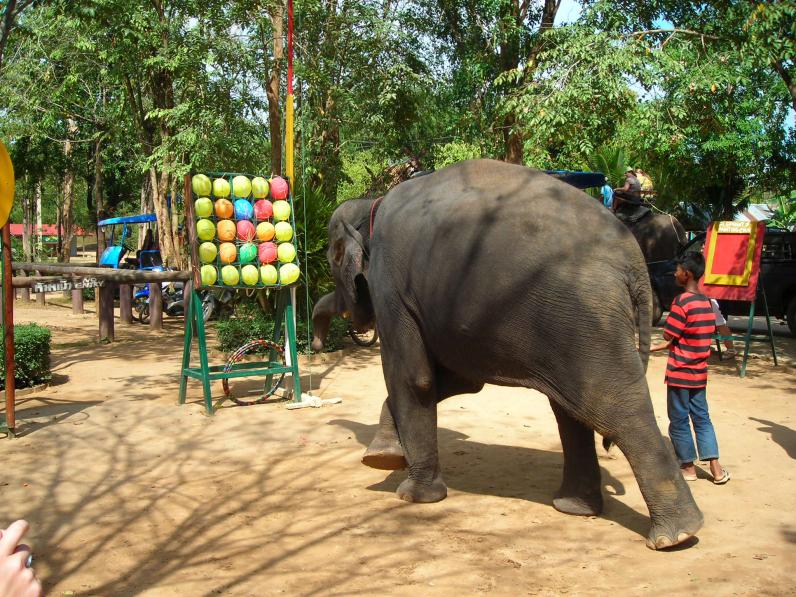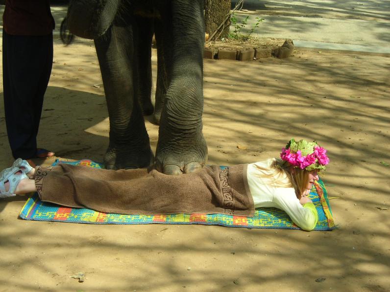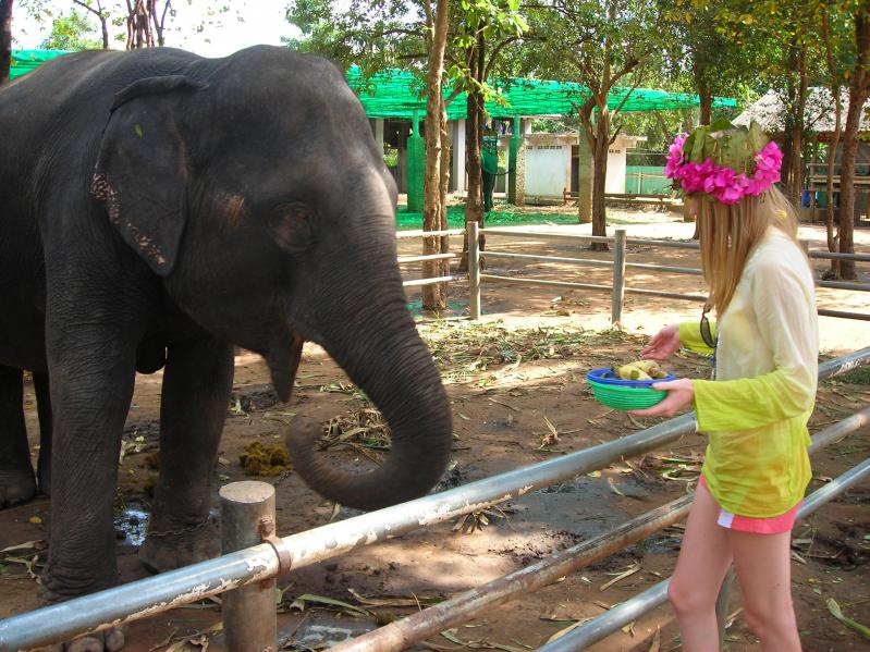 Если вы думаете, что в Тайланде можно легко встретить слона, то вы ошибаетесь. Слоны там по улицам не ходят! Но прокатиться на слоне нам очень хотелось и мы отправились в слоновью деревню. Как нам рассказал гид, таец ни за что не станет погонщиком слона, это очень унизительно. Поэтому погонщиками работают камбоджийцы. Именно погонщик тот человек. от которого зависит на сколько вам понравится катание. Наш погонщик пел нам русские народные песни про калинку и мороз, морозящий его слона. Потом он сорвал цветы и сплел мне красивый венок на голову. Тем временем наш слон вместе с другими зашел в реку и стал пить и обливаться! Мы были все мокрые и визжали от восторга! Когда прогулка закончилась, мы отправились смотреть шоу слонов. Чего они только не вытворяли: танцевали, крутили обруч, играли в дартц. А потом из зрителей вызвали одного человека, поучаствовать в шоу. Я не упустила этой возможности и слон делал мне массаж, стуча ногой и хоботом по спине. Я была очень довольна и даже не думала бояться. А сейчас, когда рассказываю об этом массаже друзьям, они называют меня смелой и говорят, что не решились бы на такое - вдруг раздавит.