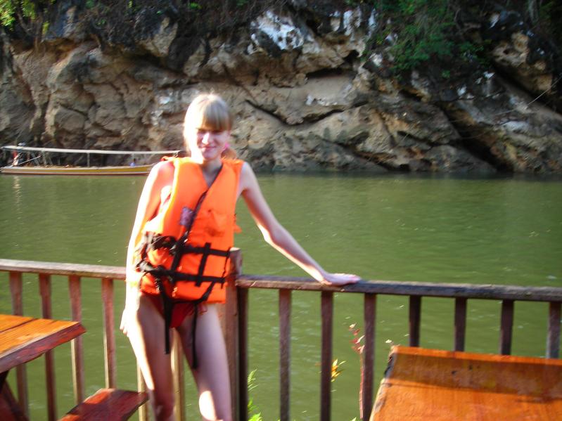 Я не умею плавать, но нисколько не сомневалась соглашаться мне или нет, когда мне предложили бодирафтинг - сплав по реке в жилете. Как можно было отказаться, ведь неизвестно будет ли еще такая возможность в жизни! Сплавлятся мы должны были в джунглях по реке Квай, это провинция Канчанабури. В назначенный день рано утром нас привели на пирс и сказали одевать спасательные жилеты. Было еще не жарко и не очень то хотелось лезть в воду! Многие из нашей группы не умели пользоваться жилетами, худенькие туристы по ошибке надели детские жилеты. Я не хотела рисковать, поэтому попросила гида правильно выбрать и застегнуть на мне жилет. Потом нас на моторной лодке отвезли подальше от отеля, спустили в воду и мы должны были приплыть в назначенное место. Я быстро отстала от всей группы и плыла практически одна, течение было не сильное. Нас предупредили, что как только мы увидим то место, где нас встречают, надо сразу же плыть к берегу, иначе течение унесет до Бангкока. Когда я приплыла в назначенное место, турист из нашей группы закричал мне, чтобы я гребла к берегу. Я попыталась, но течение сносило меня в сторону и у меня не хватало сил! Тогда этот мужчина бросился мне на помощь, он вытащил меня на мель, но я даже не могла встать на ноги - так сильно меня сносило течением! Кое как, при помощи моего спасителя я выбралась на берег и расплакалась, я очень испугалась.