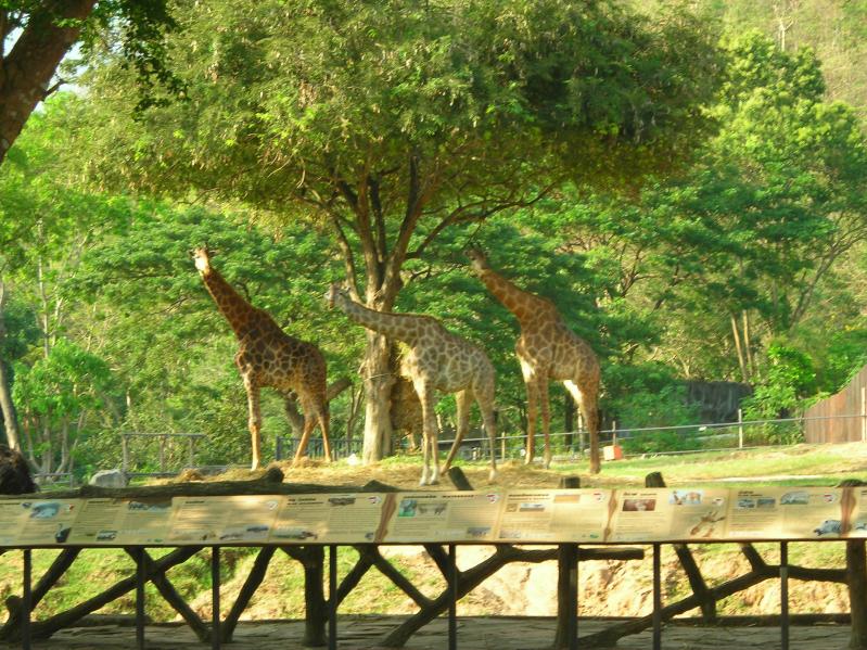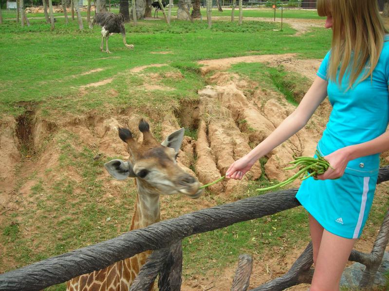 В один из дней нашего отпуска в Тайланде, погода была совсем не подходящая для купания и мы решили съездить в национальный зоопарк Као Кео (Khao Kheow Open Zoo). Экскурсию приобрели в первом попавшемся турагенстве за 900 бат с человека. Зоопарк находится недалеко от Паттайи, по дороге в Бангкок. Самое интересное, что животные там живут не в клетках, а открытых вольерах. Территория зоопарка просто огромная, около 800 гектаров и передвигаться по нему пешком просто нереально, да и можно быстро заблудиться. Туристы передвигаются по парку в открытом автобусе или на маленьких автомобильчиках. Самые запоминающиеся впечатления: кормление с рук жирафов и носорогов. Жирафы не общительные, бесплатно не фотографируются, только за корм.