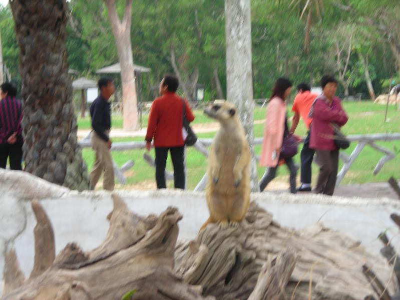 А вот носороги более приятные, не боятся близко подходить, тянут морду к рукам. Обезьяны свободно передвигаются по зоопарку, бесцеремонно едят из мисок других зверей и с удовольствием выхватывают угощения из рук туристов. Очень забавные зверьки - семейство сурикатов, кто то один всегда стоит столбиком на страже, пока другие занимаются своими делами.