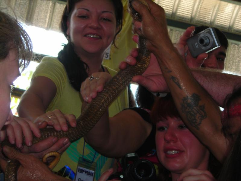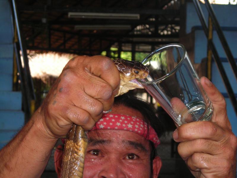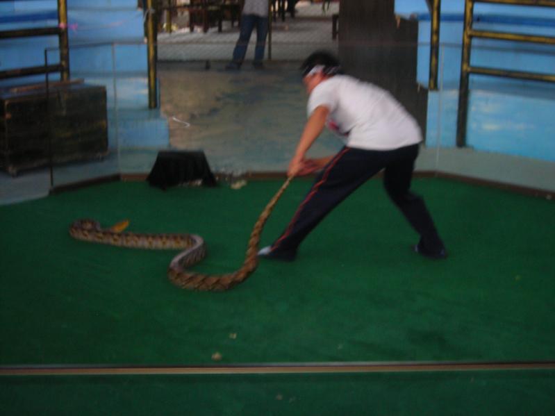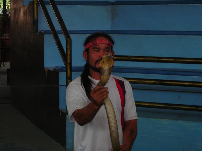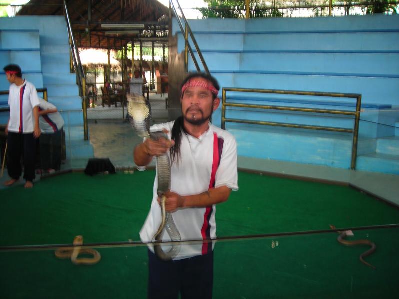 На змеиную ферму мы попали в ходе обзорной экскурсии по Паттайе от туроператора "Пегас Туристик". А вообще взрослый входной билет стоит 350 бат. Перед началом змеиного шоу можно полюбоваться на змей в террариумах и приобрести медикаменты и косметику из змеиных компонентов. Почти все змеи ядовитые, одни поражают красотой и яркостью, другие своими размерами. Наш гид посоветовал садиться на шоу на первые ряды, именно там можно получить заряд адреналина. Так я и сделала, о чем ни капельки не пожалела! Таец дразнил одновременно нескольких кобр, ловко уворачиваясь от их нападок. Некоторые зрители было подумали, что у кобр нет зубов, но тут на наших глазах из кобры выдавили в стакан яд! За время шоу мне удалось погладить нескольких змей, а одну из них даже кинули мне на колени - очень тяжелая! Во время шоу тайцы несколько раз быстро и ловко бросали в зрительный зал муляжи змеек и каждый раз туристы визжали от страха. В террариум со змеей посадили мангуста и мы наблюдали, как зверек ловит ядовитую змею и борется с ней, захватывающее зрелище!
