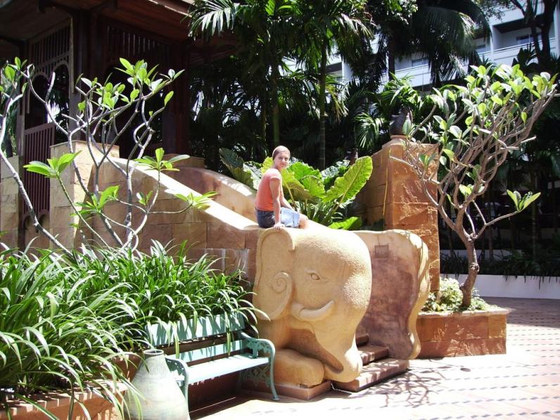 Наш отель находился на второй береговой линии. Напротив отеля - большой торговый центр, где вполне можно что-нибудь прикупить, перекусить и просто потратить время. Отель неплохой, номера просторные, убирают каждый день. На завтрак - яичница, сосиски, овощи и немного фруктов. Из тайских блюд - что-то типа вермишели, плов, каша,мясо.