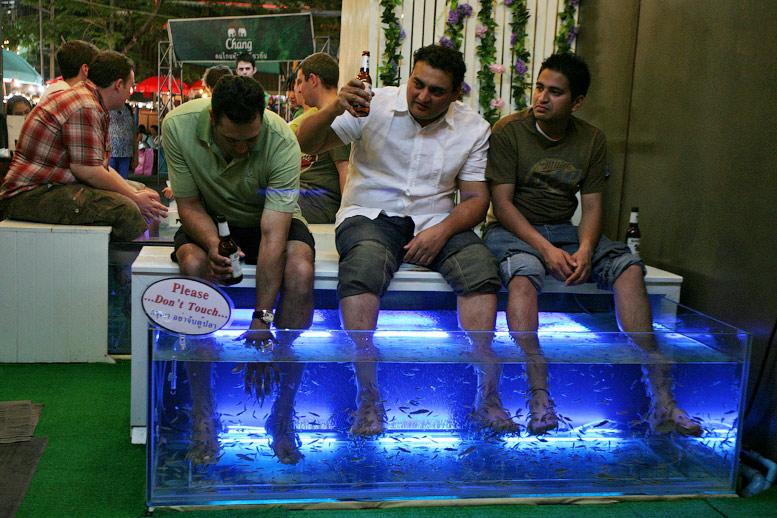 Это попросту особый вид рыбок который питается мертвой кожей ваших стоп ,вобщем и клиенту приятно и рыбки сытые , вот такое вот инноваторство