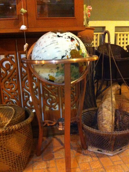 Пока решался вопрос с арендой дома, мы жили в Хуа - Хине в одном весьма необычном гестхаузе. Находиться он в начале улицы Naeb Kehardt. Rd, soi 1, называется Hua Hin place. Сам гестхауз достаточно простой, хорошие номера за умеренную плату в 600 бат за двоих в день. Казалось бы ничего не обычного, таких гестов тысячи по всей стране. Но меня привлек холл, где можно позавтракать и посидеть за бесплатным Wi-Fi. Понравился он своим интерьером. В этой большой террасе, где от дождя закрываются полиэтиленовыми навесами, собрано огромное количество антикварной мебели и многих других вещей! ![]() На столе стоят вот такие интересные весы: ![]() Даже матрешки есть! ![]() На стене каждый час били старинные часы, мне было безумно интересно рассматривать все эту красоту, но я так и не узнала, кто коллекционировал все эти вещи: среди которых были и старинный велосипед, статуэтки, не говоря о мебели, часах и даже лыжах и сноуборде! Возле ресепшена стоял вот такой глобус! ![]() Деревянные рыбки понравились моему сынульке, а еще очень понравился персонал, все вежливые и помогали готовить смесь для ребенка! ![]() ← Замечательное видео о Хуа- Хине. | Магазины Seven- Eleven. Все что нужно путешественнику, можно найти здесь. →