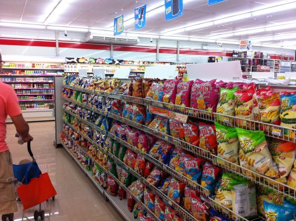 Когда приезжаешь в Таиланд, магазины 7-elevеn, становятся спасительным островком, не столько потому, что вам что- то нужно купить, сколько потому, что здесь работают бешеные кондиционеры. И совершая прогулку, можно нырнуть в его освежающий холод, прихватив по пути ледяного кофе, колы или содовой! В Таиланде более 5000 тысяч магазинов севан- элеван по всей стране, все они однотипные и торгуют одной и той же крайне полезной продукцией! Во первых это напитки: вода, кофе, соки, кола и конечно же холодное пиво, которое притягивает фарангов, как магнит!