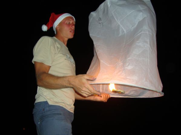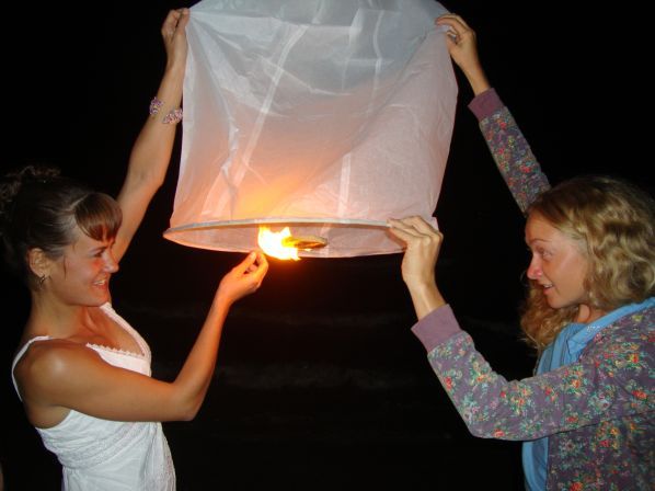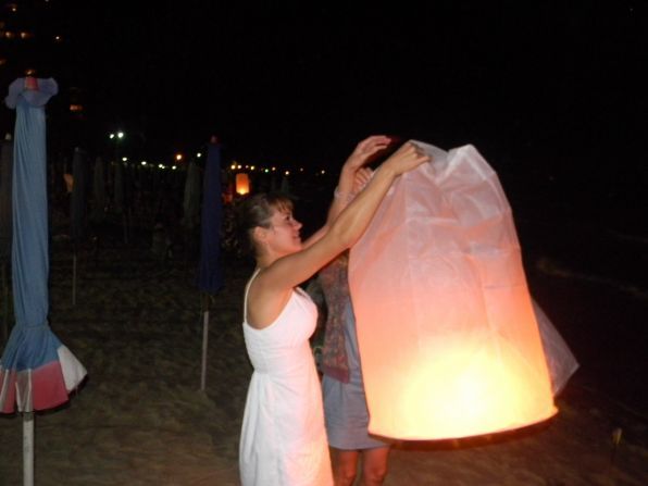 Потом мы пошли к морю, что бы попускать воздушные шары, (как на празднике Лои Кратонг) из бумаги и популять фейерверками всласть!