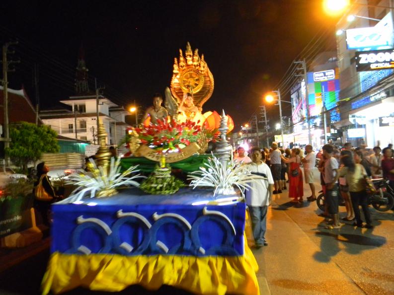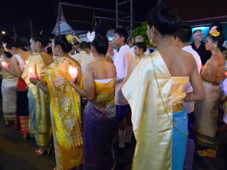Вокруг играла музыка, тайцы несли в руках свечки, фонарики.