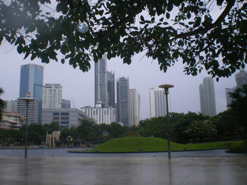 Возле Петронасов расположился уютный парк, с озерцом и красивыми растениями. Толпы туристов шныряли повсюду и запечатлевали себя на фотоаппарат в разных ракурсах. Небо нахмурилось и пошел сильный тропический дождь, пришлось прятаться в одном из уютных кафе.