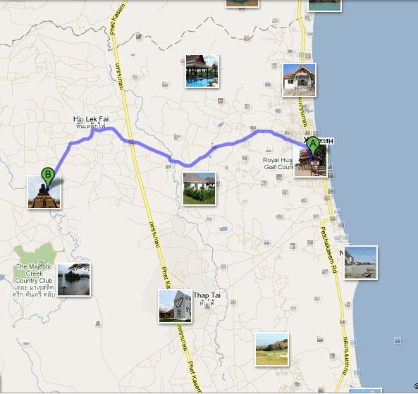 Поехать к храмовому комплексу Wat HuyaMongkol не сложно. Выезжаете на любимую Petchkasem, едите на юг в сторону Пранбури. После того как проедите мост, по первой же дороге поворачиваете направо, в сторону гор. Ехать километров 20, указатели есть везде, поэтому не заблудитесь.