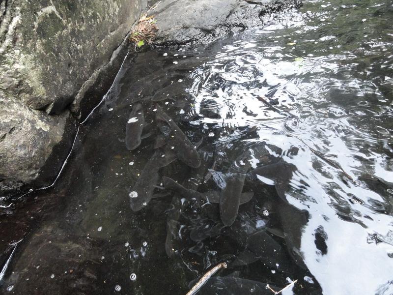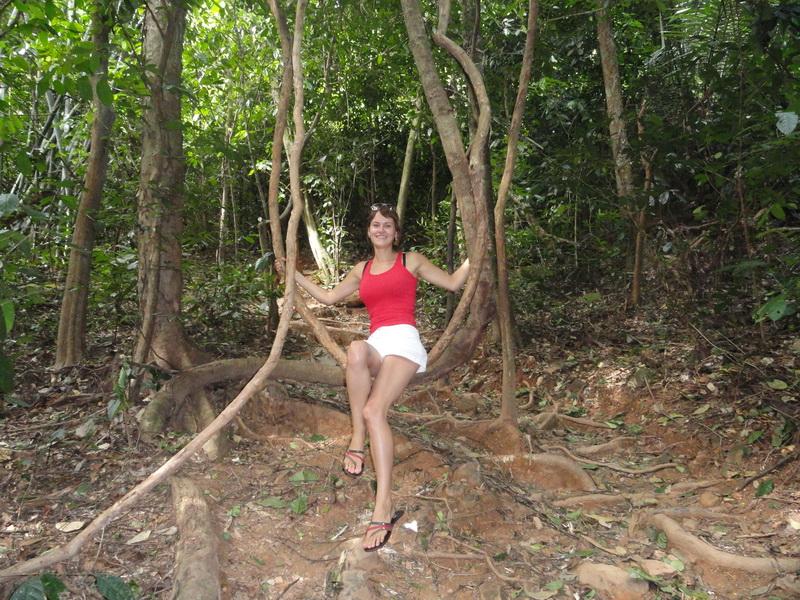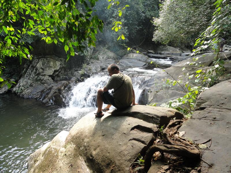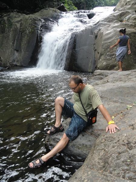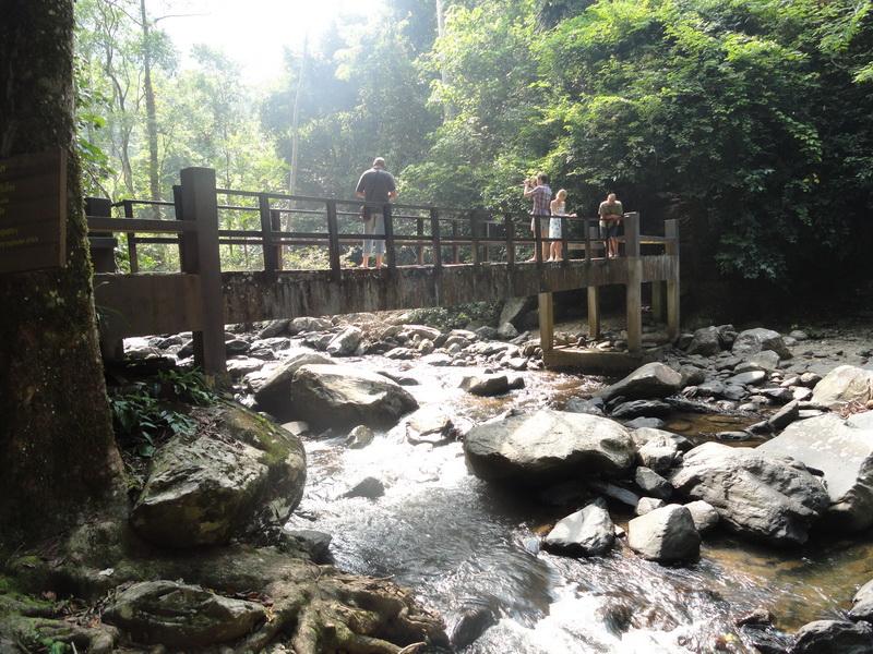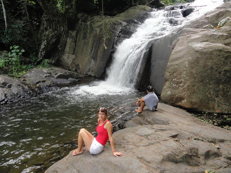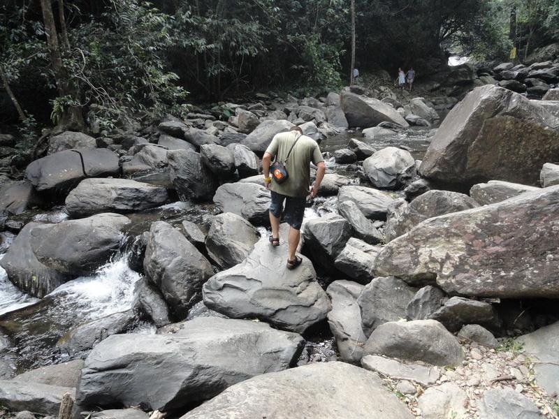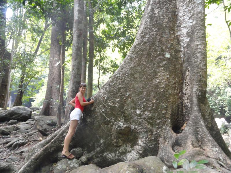 Национальный парк Каенг Крачан. Водопад Па- Ла-Оо. ( Pa-La-Oo Waterfall - Kaeng Krachan National Park).Хорошо порывшись в интернете на счет достопримечательностей Хуа- Хина, я наткнулась на Waterfall - Kaeng Krachan National Park. Мы решили съездить туда на обзорную экскурсию. Как оказалась ехать туда достаточно далеко, поэтому привожу ниже карту, на тот случай, что бы вы не заблудились. Для того, что бы доехать до водопада, вам необходим свернуть с Petchkasem на запад в районе 71 сои.![]() Ехать оказалось километров 80 в одну сторону, ориентиром для нас служили указатели Waterfall , если не разберетесь сами, то местное население всегда поможет. Приехав к чекпоинту ( непосредственно вход в парк с охраной), мы с удивлением обнаружили, что вход стоит 200 бат с одного человека. Поскольку это наша первая вылазка в национальные парки, мы отдали деньги. В дальнейшем, просто более внимательно осматривали карту местности, и проезжали в объезд чекпоинтов. Мы оставили наши байки пошли по дорожке, которая вела к водопаду. Я испытала детский восторг, когда меня окружил рой красивых и огромных бабочек. Их были сотни, они садились на волосы, руки, шорты и даже фотоаппарат. Вскарабкавшись по огромным валунам, мы вышли к очень необычному дереву, корни которого были похожи на доски. Наземные корни именно такой формы присущи только тропическим растениям рода Ficus. Впереди нас ждал путь по камням и переход через узкий мостик. Подъем начинался плавно, а затем резко уходил вверх. Кое-где были привязанны веревки, за которые можно было держаться. Их обсыпали сотни бабочек. Обратно мы возвращались по камням вдоль реки. Но уже выше такой опоры не было, зато повсюду свисали воздушные корни деревьев, за которые можно не только держаться, но и покачаться на них. Через 10-15 минут ползания по горам, мы подошли к первому уровню водопада. Любимый несколько разочаровался, так как ждал, что-то чуть поменьше Ниагары, но водопад оказался скорее горной речушкой, с высокими порогами, чем "шумящей водой". Тем не менее зрелище струящейся воды, между камней, в густом тропическом лесу,завораживала. Горный чистый воздух легко проникал в наши легкие, и идти стало намного легче. В самой речушке было такое огромное количество рыбы, что мы просто плакали от отсутствия удочки или спиннинга. Хотя вряд ли нам удалось порыбачить, так как любое покушение на живность, обитающую национальном парке строго карается. И снова верх и вперед. Как у Высоцкого в песне " здесь вам не равнины, здесь климат иной....". По пути нам встретились чопорные англичане, красные как помидоры, и с тяжелой отдышкой. Гидом у них была тайка, которая легкая как перышко, прыгала по камням и уступам и дразнила туристов. А вот и второй уровень, снова не очень большой водопадик, но потрясающе красивый. А водичка то холодная! Можно бесконечно долго смотреть на текущую воду. И как приятно, умыться чистейшей горной водой, от которой мурашки по коже. По дороге на третий уровень водопада, мы увидели вот такие, неизвестного предназначения, колодцы со стоячей водой. Придя к третьему уровню, мы узрели табличку о том, что в сезон дождей путь наверх закрыт. В напоминание то том, что в горах может сойти лавина, рядом с табличкой стоял огромный валун, под который посетители подкладывали веточки, что бы он не упал. Традиция хорошая, она говорит нам о том, то что по одному все слабые, а все объединившись можн