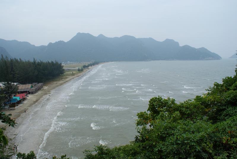В 60 км южнее Хуа-Хина, на побережье Сиамского залива расположен национальный парк Khao Sam Roi Yod, название которого в переводе на русский язык означает «Гора трех сотен вершин». Не знаю, сколько там вершин, может и правда три сотни, но вид обалденный. Парк огромный, около ста квадратных километров. Скалы вдоль дороги, мы останавливались, фотографировали. В туристической брошюрке прочитали, что в парке пещеры, а в пещерах то мы не бывали, решили ехать.