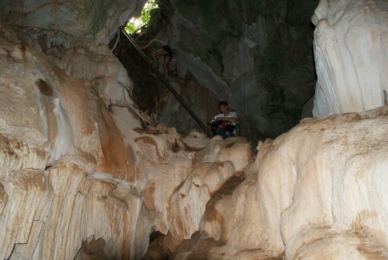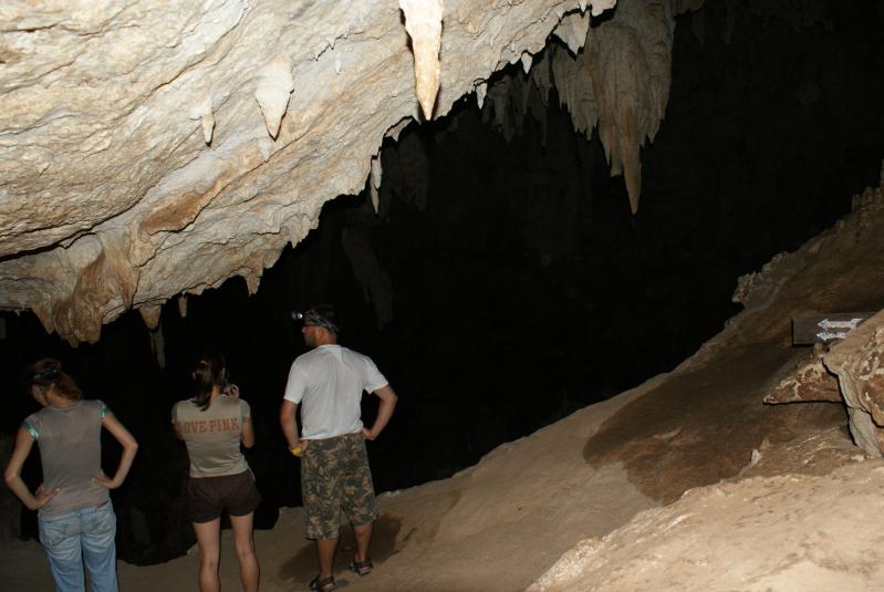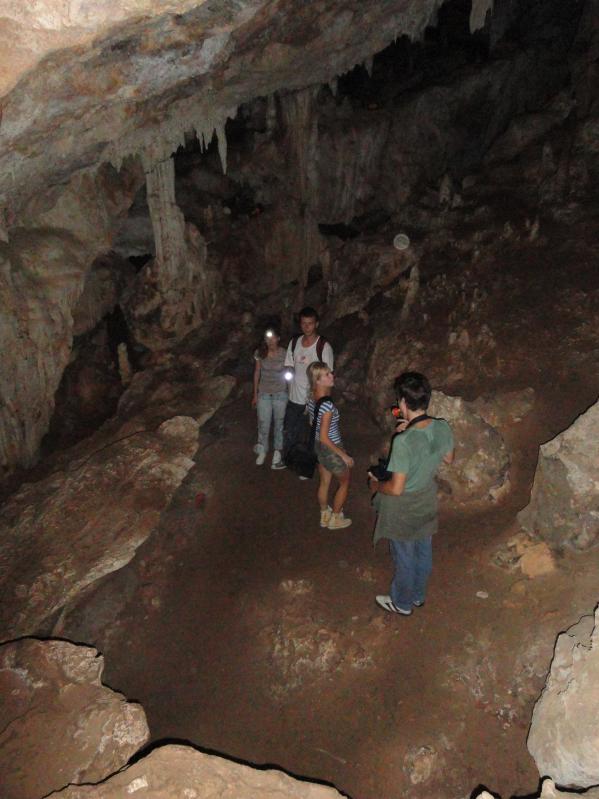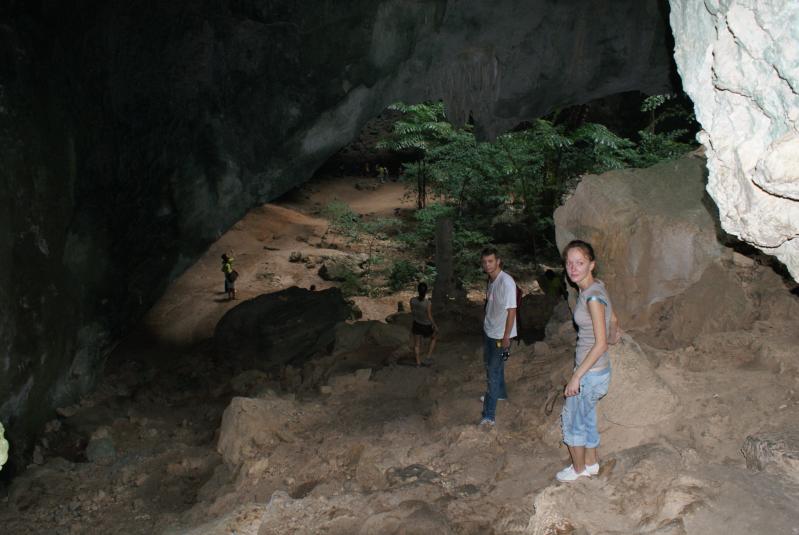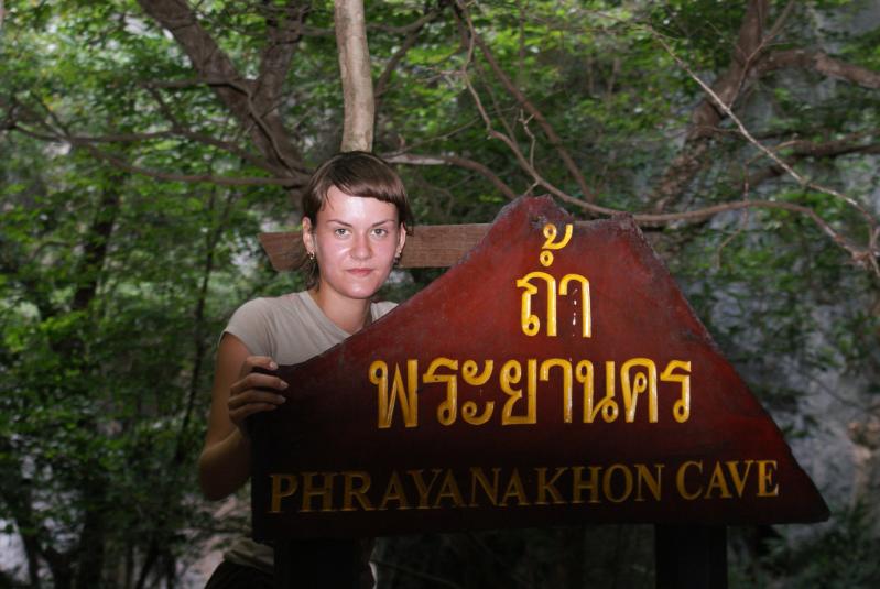 Вообще въезд в парк платный - 200 бат стоит, но только с туристов, местные проезжают бесплатно. Так и мы решили найти бесплатный вход, свернули раньше поста и нашли. Короче, перед шлагбаумом направо и не сворачивать, дорога даст петлю и выведет Вас уже в парк. Нам было очень радостно. Саша По пути нам встретилась крабовая ферма. Да, еще самое главное, у всех ребят посещение пещеры - в первый раз. А вот и первая пещера со сталактитами, сталагмитами, с глубокими ущельями, ну и с летучими мышками. Лично мне было страшновато. Подниматься ко входу в пещеру, нужно в гору, метров 500. Курильщикам и толстякам не советую. Не вздумайте ехать в шлепанцах, иначе будете возвращаться босиком, порвутся. Нужны кеды с не скользкой подошвой. Обязательно фонари, по количеству человек. Без фонаря, рискованно для жизни. Читайте выше, "с глубокими ущельями"!!! В пещере очень большая влажность, берите сухие футболки, переодеться, Юрину майку выжимали. В костюме Дольче Габбана, тоже ехать не стоит, испачкаетесь по-любому. Ура!!! Нашли выход... Вторая пещера. К ней добраться посложнее, необходимо взобраться на гору и спуститься,пройти по пляжу метров 500, и вот еще один сложный подъем в 430 м. Слово сложный надо обвести и подчеркнуть. Очень сложный и очень крутой подъем. Пещера "Phrayanakhon cave" назвал правитель Накона Сри Таммарата на южном полуострове Таиланда, два столетия назад.Путешествовал судном, когда судно выбросило на берег,при сильном шторме. Таким образом, обнаружил пещеру "несчастным случаем". ← Хуа-Хин