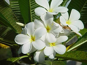 Приезжая в Таиланд, не возможно не заметить одно растение, его чудесный невообразимый запах витает в воздухе, заставляет обернуться и вожделенно искать глазами источник этого запаха. Когда видишь это растение, то с трудом его можно назвать красивым: большое дерево или кустарник, с мясистыми листьями, и полуголыми ветками, далеко не изящное. Но на нем цветут потрясающее цветы - белые, нежные и невероятно гармоничные. Изображение цветка этого растения можно встретить в Таиланде практически везде: в кафе, в виде заколок для волос, рисунком для керамической плитки, в виде мыла и сувениров. Отели утопают в цветах этого растения. Мне кажется, что это растение, в Таиланде более популярное, чем лотос и орхидеи. Но мало, кто знает, как называется этот цветок. Так вот, цветок этот называется плюмерия, или по-другому франджипани. По - тайски звучит как: лан тхом ( старое название) или лилавади.