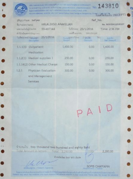 Рассказываю. Недавно был в Паттайе по работе, пришлось там задержаться. Всё бы ничего но у меня не было с собой инсулина столь длительный срок. Начал гуглить, где купить инсулин в Паттайе, нашёл этот форум почитал и пошёл как моська по аптекам, и вот, господа, нифига в обыной аптеке, даже крупной, инсулин вы не купите! Мне удалось много что выяснить у тайских "фармацевтов" (благо на тайском говорю), все как один заявляют что инсулин выдаётся строго по рецепту, выписанному врачём лично, и не в аптеке а в госпитале. Я нашёл ближайший госпиталь "Pattaya Memorial Hospital" там всё мне быстро оформили, кстати даже незнающему язык там всё очень просто, надписи в клинике везде на трёх языках, тайском, английском, и русском. Дают переводчика, если требуется. Никаких справок о болезни, никаких медецинских документов, показывать не нужно. Никто и не просит. Но паспорт (загран) обязательно! По нему там и оформляют на приём к врачу. Я на всякий случай взял бутылёк со своим иснулином, просто показать врачу, да и это ему не нужно было, он посмотрел покрутил, улыбнулся и отдал мне его. Там всёравно все надписи только на русском были. Фотки госпиталя: Порядок получения инсулина в госпитале очень простой 1 Регистратура, там назначают консультацию с врачом 2. Приём у врача (он просто спрашивает, какой инсулин нужен и всё.) потом выписывает бумажку для аптеки которая находится там же рядом с регистратурой 3. С бумажкой выходишь и ждёшь минут 10 когда тебя пригласят на оплату в кассу, всё там же Оплачиваешь лекарство и получаешь в аптеке в пакетике со льдом. 4. Вуаля, ты счастливый импортный диабетик с инсулином в пакетике. По цене. За 10 млл хумулина пришлось заплотить 1600 бат, + приём, + шприцы, и того вышло немного больше 2000 бат. Цена на инсулин посравнению с нашими ценами конечно огромная, но если надо то надо.  Редактировалось: 2 раз (Последний: 7 февраля 2016 в 20:33) |