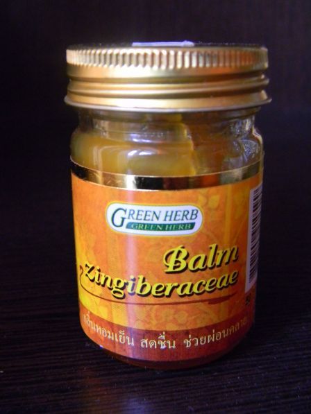 Бальзам, этот называется Grenn Herb Balm Zingiberaceae. По-русски переводиться как, зеленый травяной имбирный бальзам. По запаху напоминает вьетнамский бальзам "звездочка", но в отличии, от этого советского средства, не такой жирный, хорошо впитывается. Имеет охлаждающий эффект, и немного печет кожу. В Таиланде, используется для фуд - массажа. Причем, моя массажистка, сказала, что варят они его самостоятельно, и мастера тайского массажа покупают его за копейки.