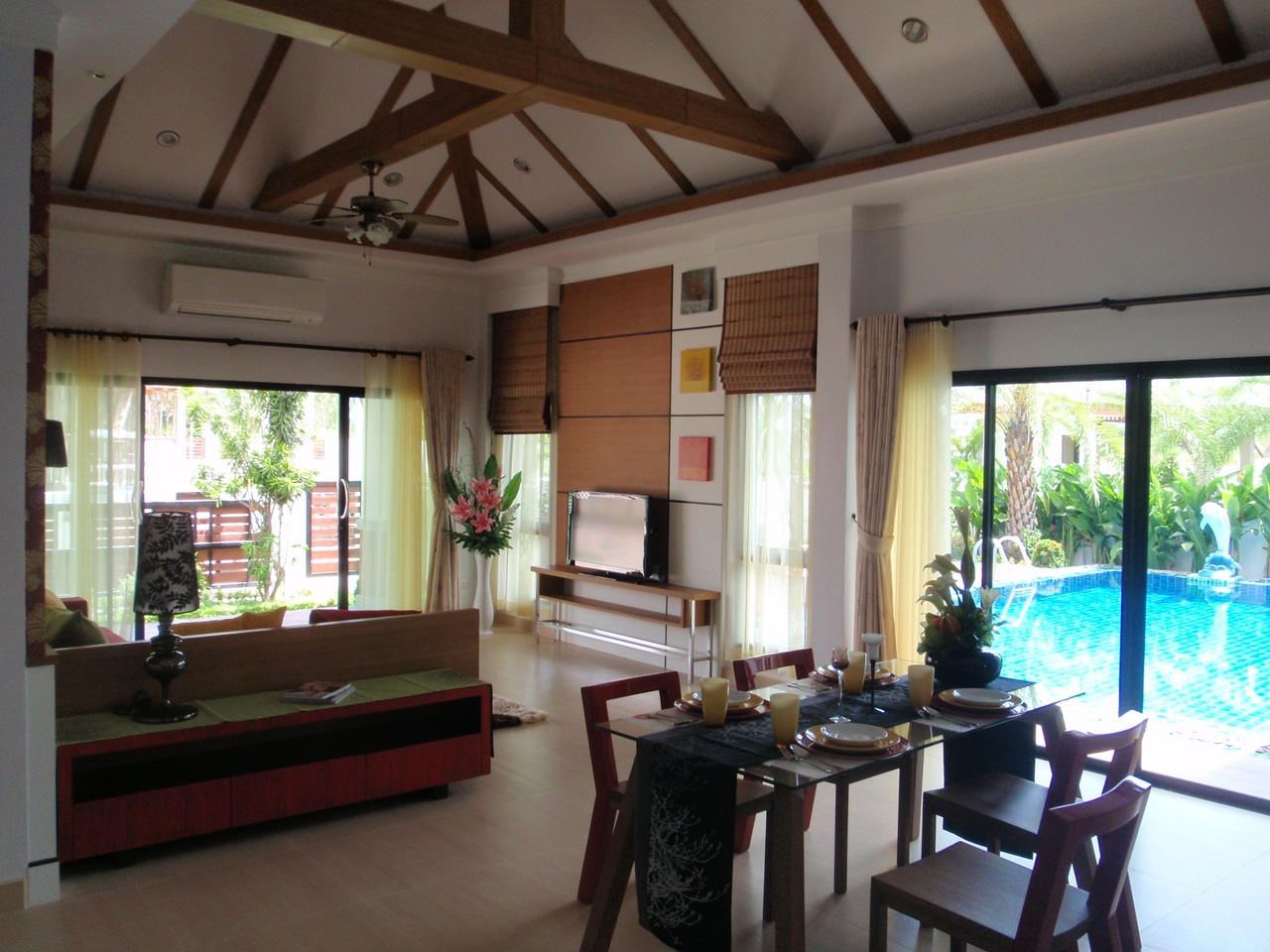 Элегантный тайско-балийский стиль преобладает в интерьере комнат. Возможно строительство бассейнов любого размера с открытой террасой. Ухоженный зеленый сад создают атмосферу умиротворенности и покоя. Если Вы уже просматривали какие либо проекты для покупки недвижимости в Таиланде, то сравните с нашими преимуществами, а их у нас не мало: